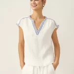 The Sleeveless Top with Stand-up Collar is a stylish and comfortable piece that combines classic elements with modern design.