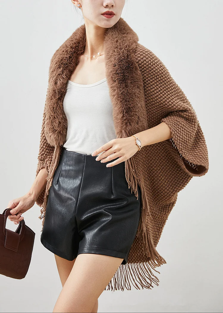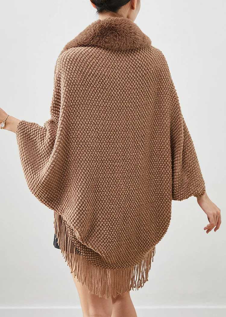 Boho Brown Fur Collar Tasseled Knit Cardigans Fall