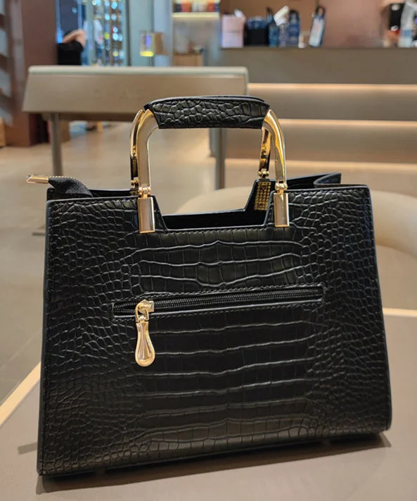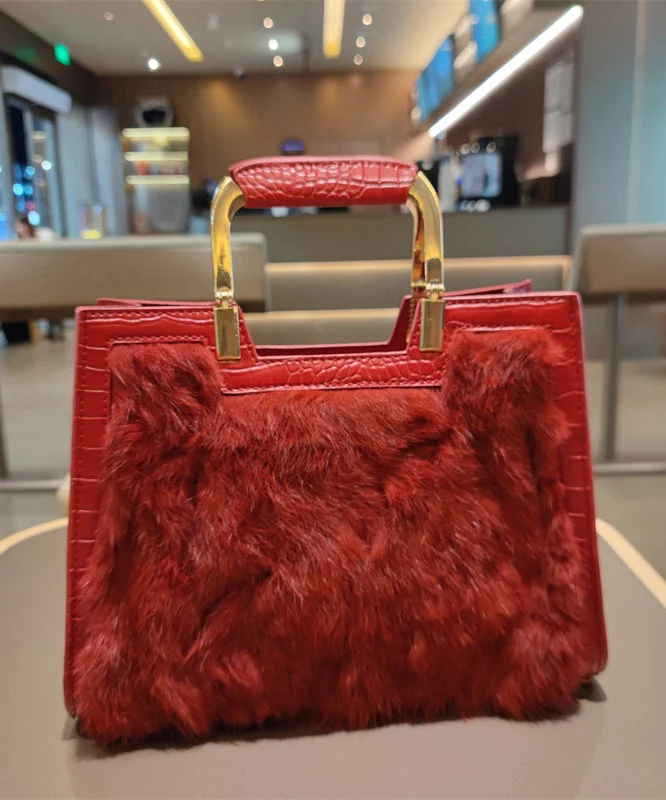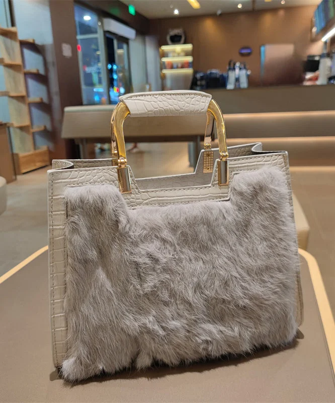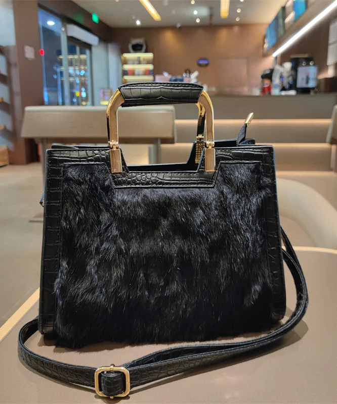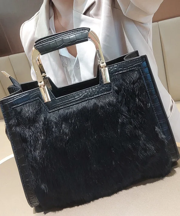 Boutique Black Faux Fur Patchwork Calf Leather Tote Handbag