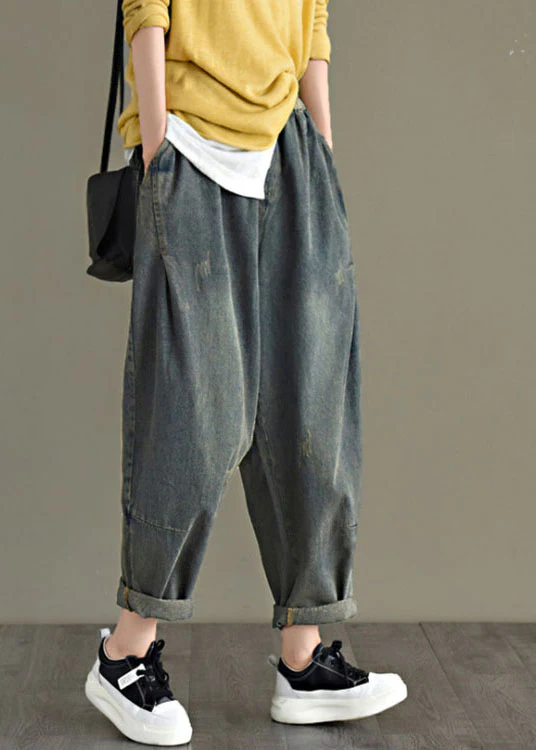 Chic Blue retro Pockets Harem Fall Denim Pants