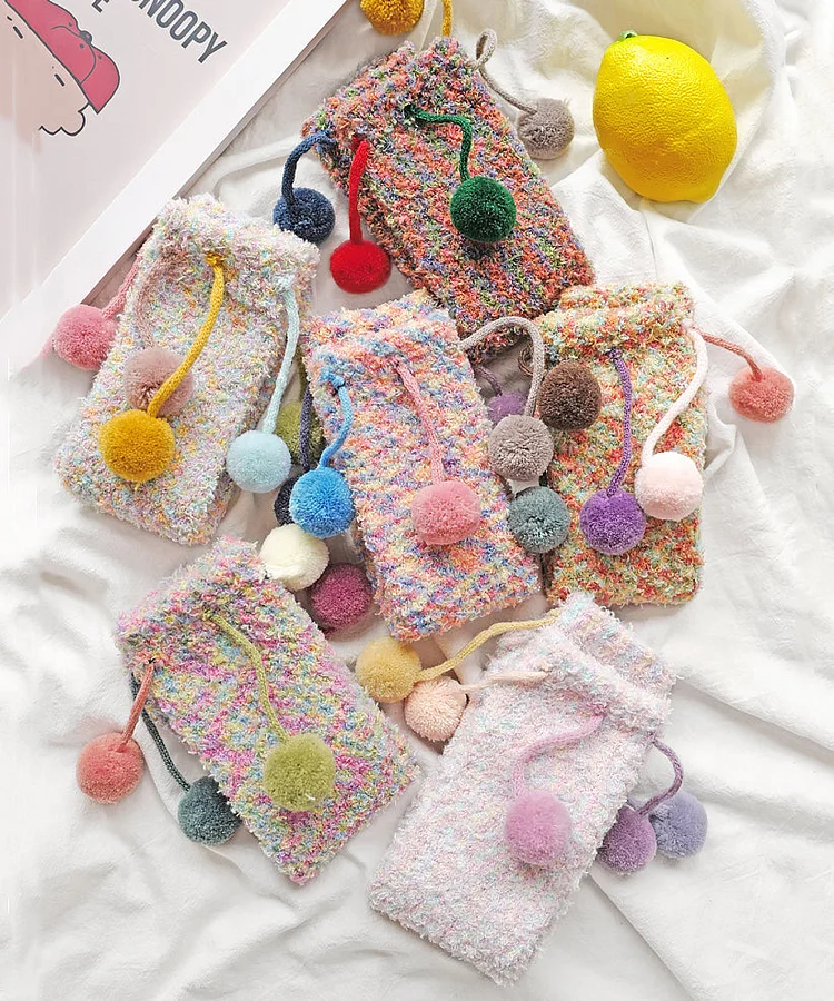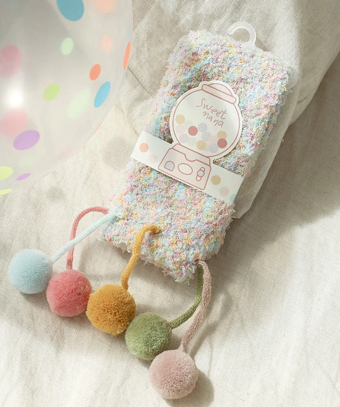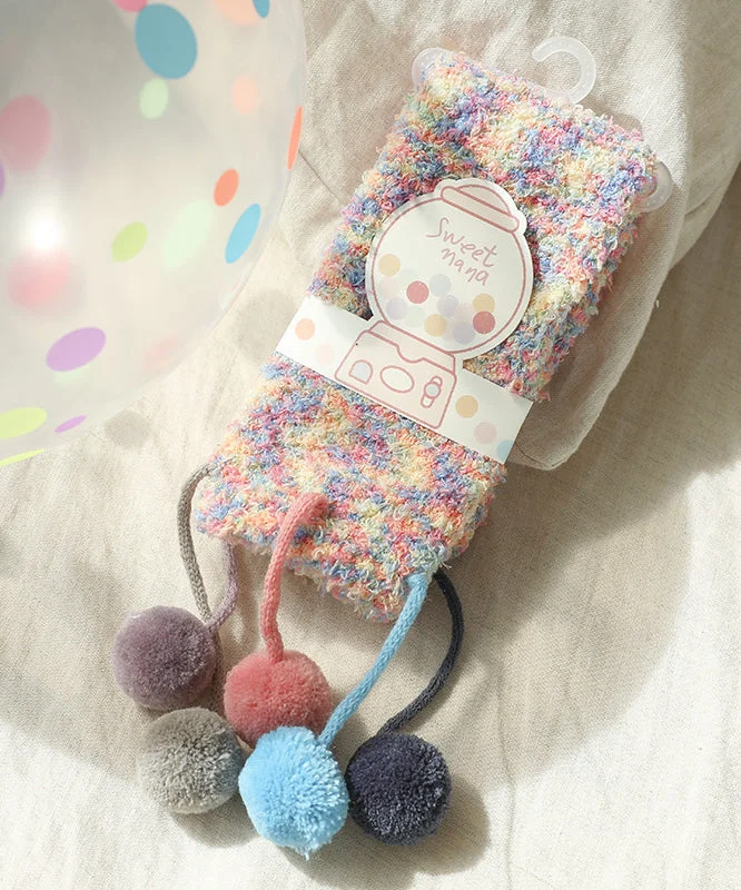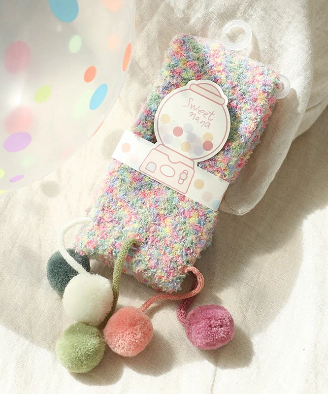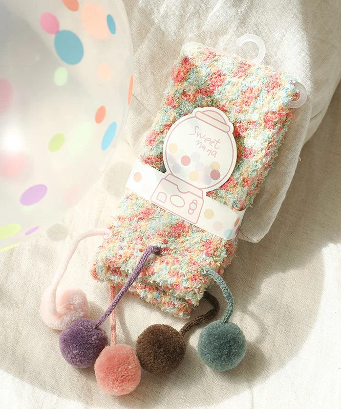 Coral Velvet Socks Warm In Fuzzy Ball Decorated Autumn And Winter Cute
