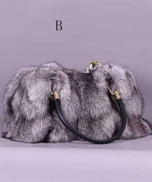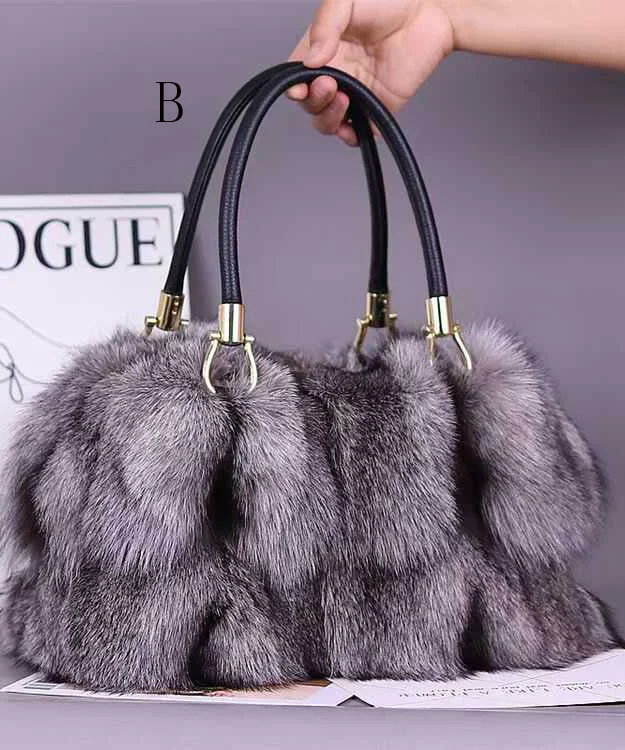 Fashion And Versatile Fox Fur Large Capacity Tote Handbag