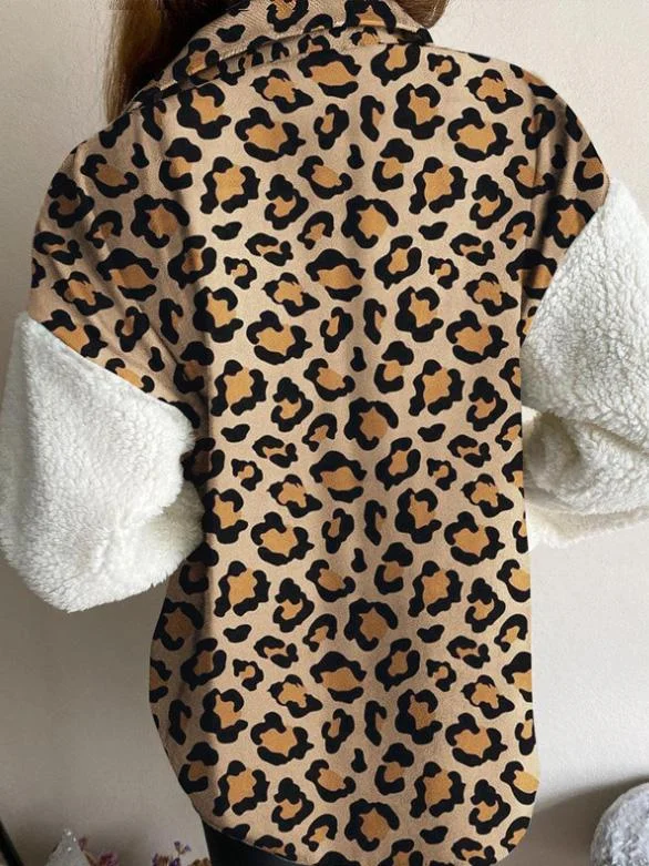 Be the first to review “Leopard Print Plush Stitching Long Sleeve Coat”
