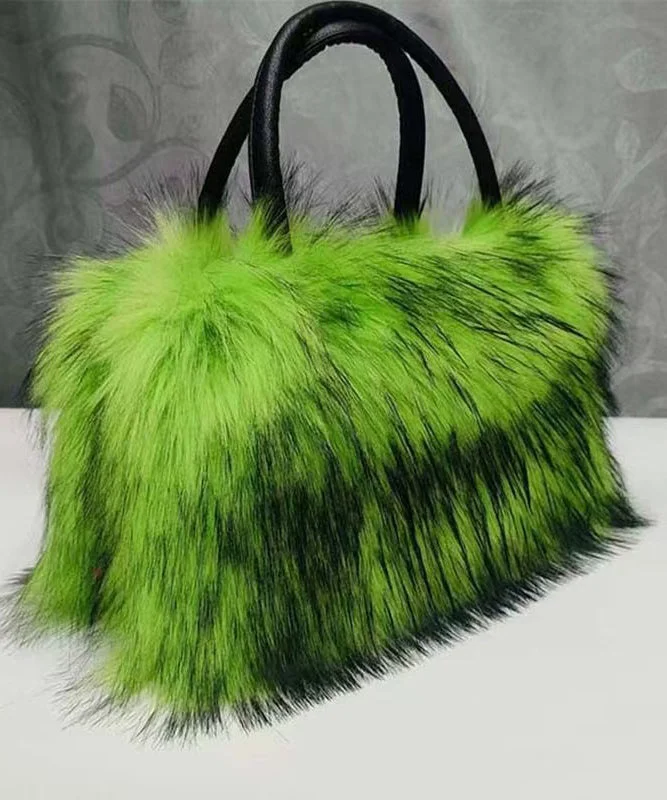 Stylish Green Fuzzy Fur Fluffy Large Capacity Tote Handbag