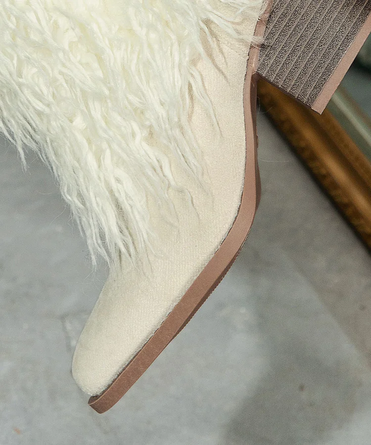 Stylish White Fuzzy Wool Lined Splicing Suede Chunky Boots