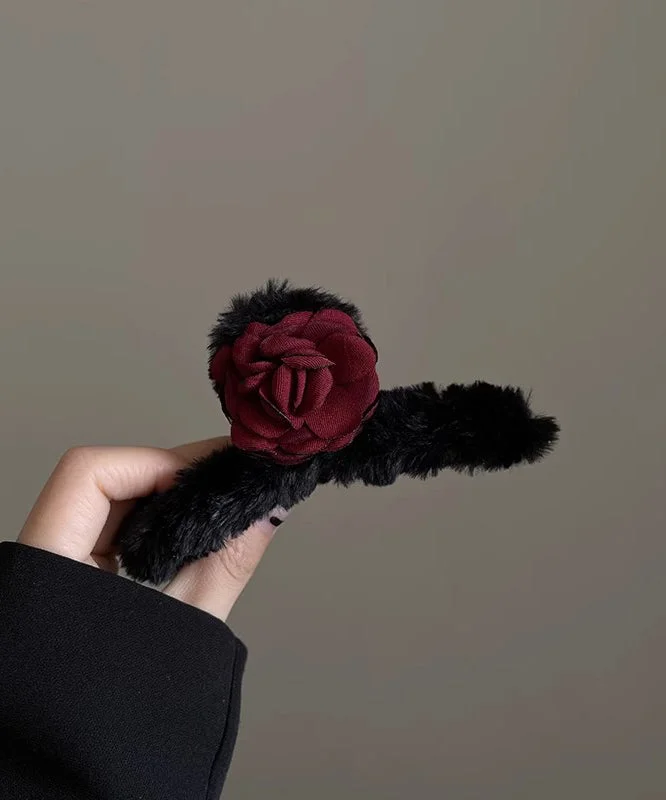 Women Black Fluffy Rose Shark Clamp Hairpin
