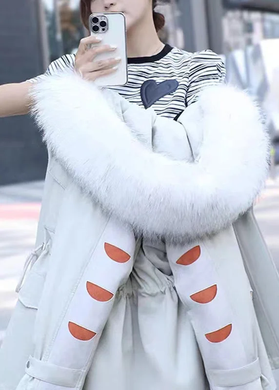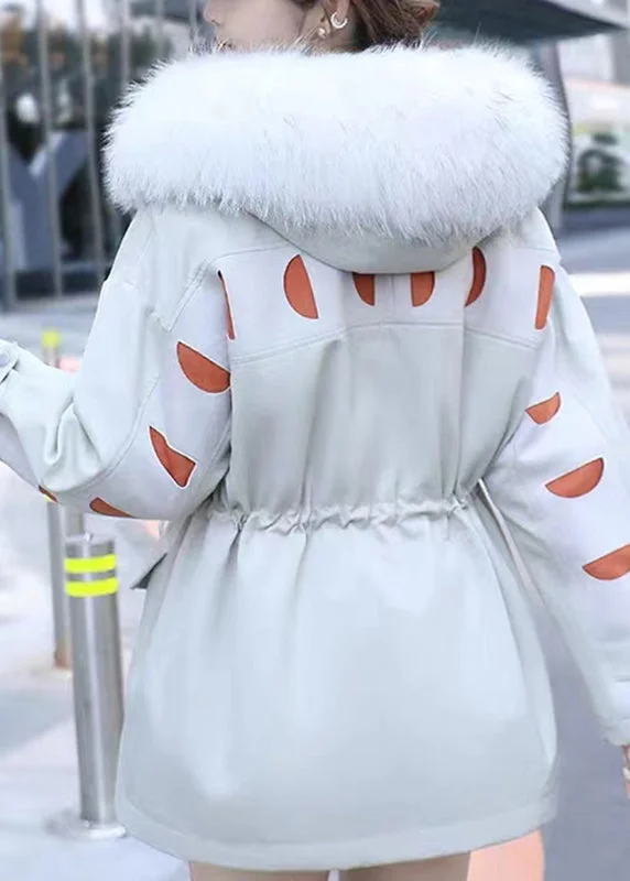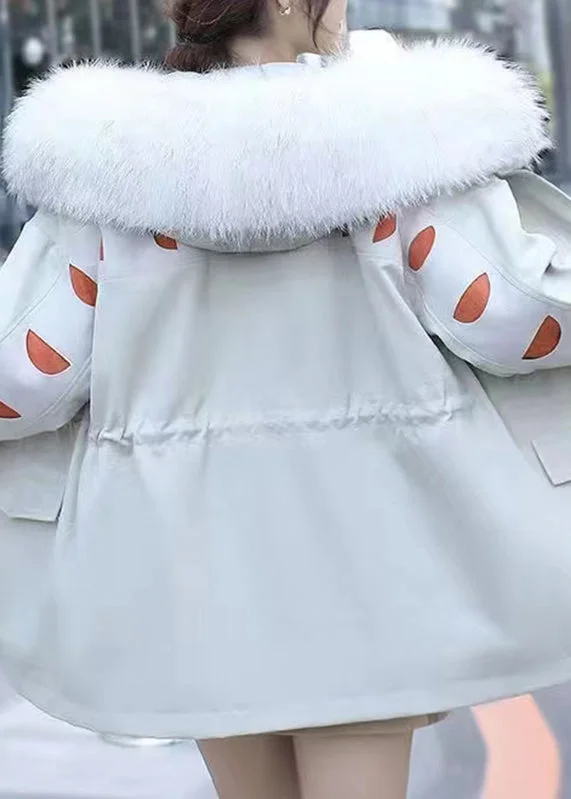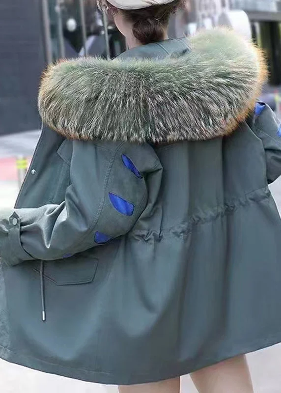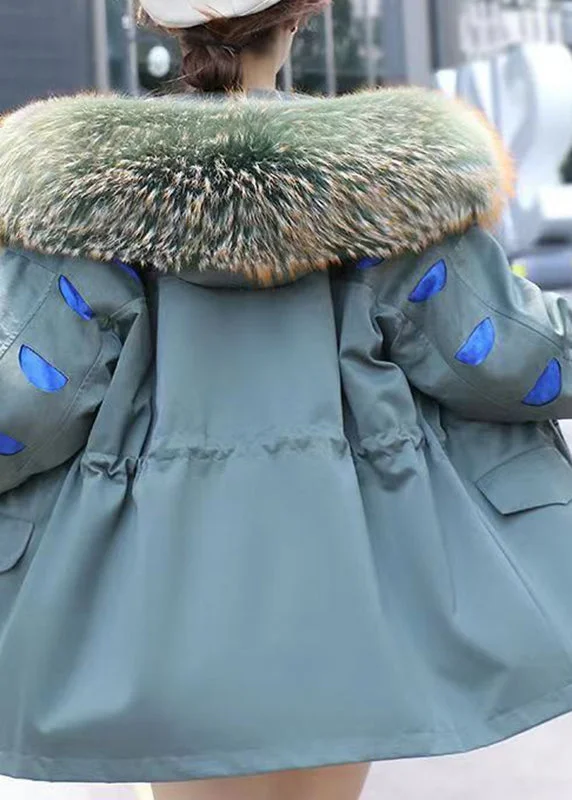 Women Blue Fur Collar Drawstring Pockets Patchwork Parka Long Sleeve